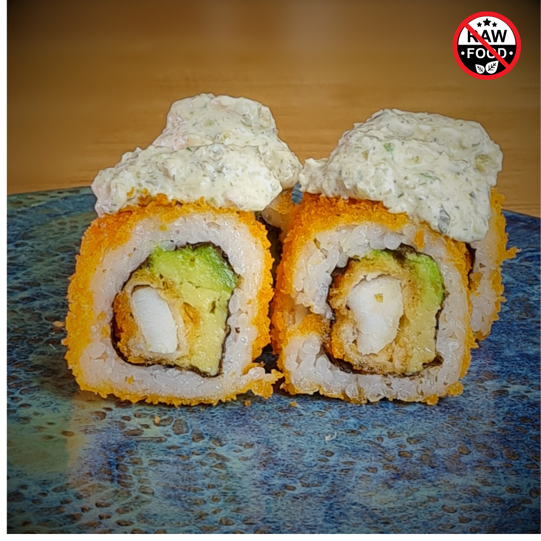 + Delivery gratisCongrio frito empanizado y palta. Cobertura de panko, bañado en salsa shiso y tártara de la casa